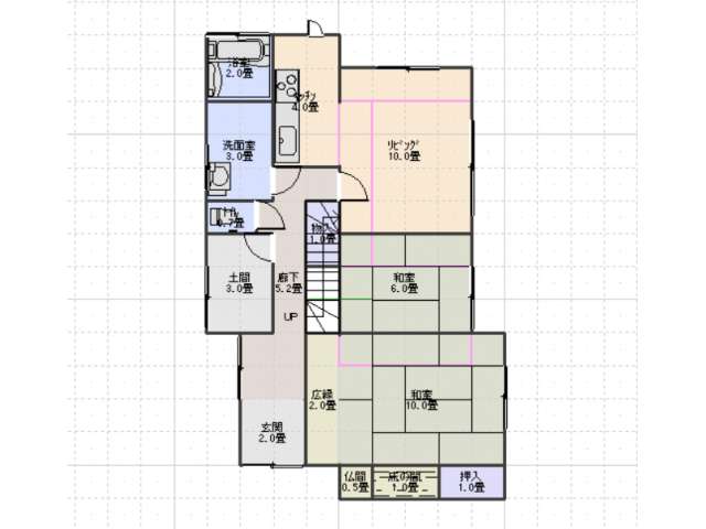 | 詳細間取 | 5LDK (1階:洋10帖×1、1階:和10帖×1、1階:和6帖×1、2階:洋6帖×2) | ||